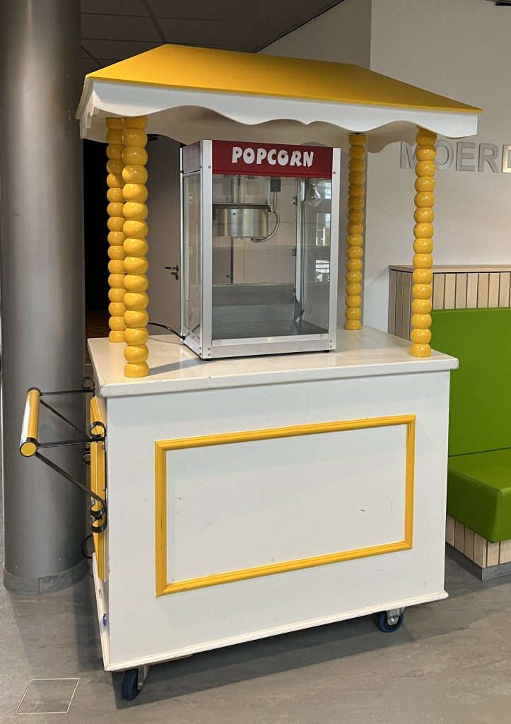 Wanneer u geen plaats heeft voor een grote marktkraam maar wel een leuke aankleding bij de popcornmachine wilt, kunt u bij ons ook een traditionele Oud-Amerikaanse popcornkar huren. De kar is voorzien van leuke details zodat uw evenement helemaal compleet is.